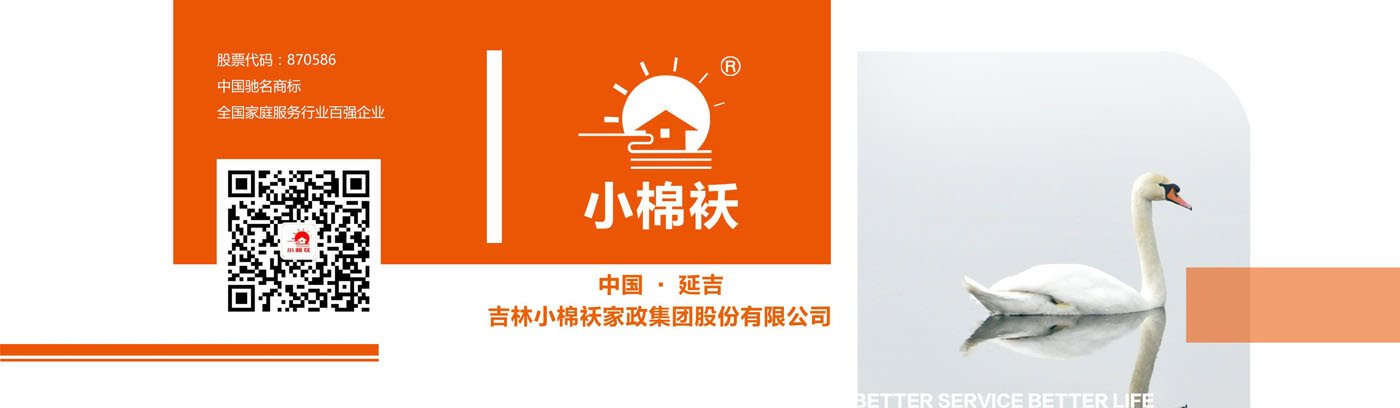吉林小棉襖家政集團股份有限公司成立于2004年6月3日,注冊資本4020萬元,主營業(yè)務有物業(yè)管理、培訓學校、家政服務,勞務派遣、保安、保潔服務等。先后安置下崗職工和農村剩余勞動力就業(yè)二萬多人。公司先后榮獲:全國家庭服務行業(yè)知名品牌單位、全國優(yōu)秀民辦職介機構、全國家庭服務行業(yè)百家誠信企業(yè)、中國清洗保潔十大標兵企業(yè)、吉林省十大服務業(yè)品牌、吉林省守信用重合同單位、吉林省馳名勞務品牌、吉林省誠信維權先進單位、吉林省清費者滿意單位等榮譽稱號。2011、2012連續(xù)二年被評為全國家庭服務行業(yè)百強企業(yè)。